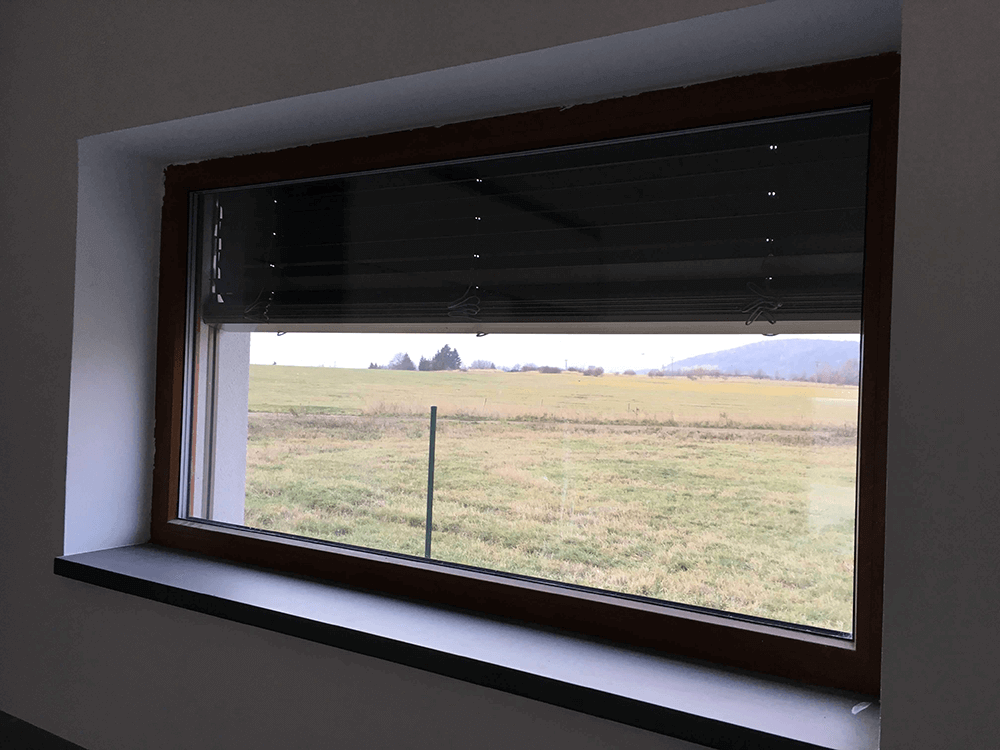 žaluzie. Hliníkové vodící lišty zajišťují stabilitu